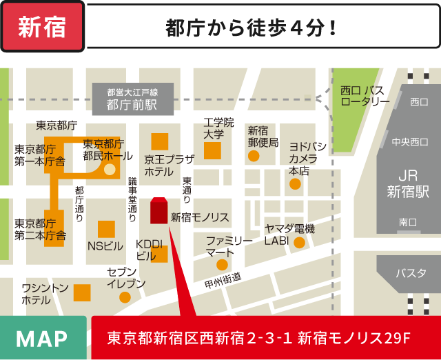 都営大江戸線「都庁前駅」A2出口徒歩5分 -