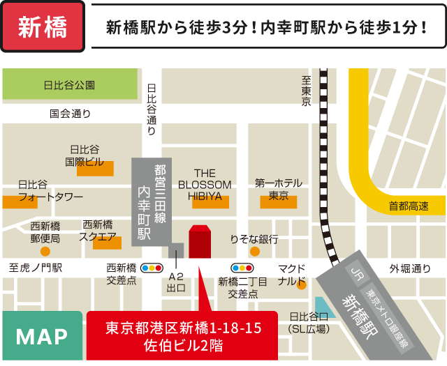 東京メトロ銀座線「新橋駅」徒歩3分 -